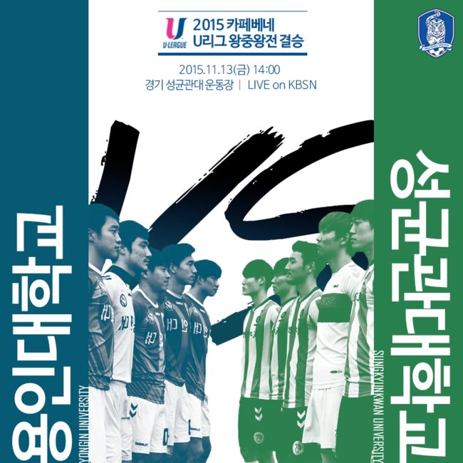 대한축구협회는 "'2015 카페베네 U리그 왕중왕전' 성균관대와 용인대의 결승전을 13일 오후 2시 수원에 위치한 성균관대학교 운동장에서 개최한다"고 밝혔다.