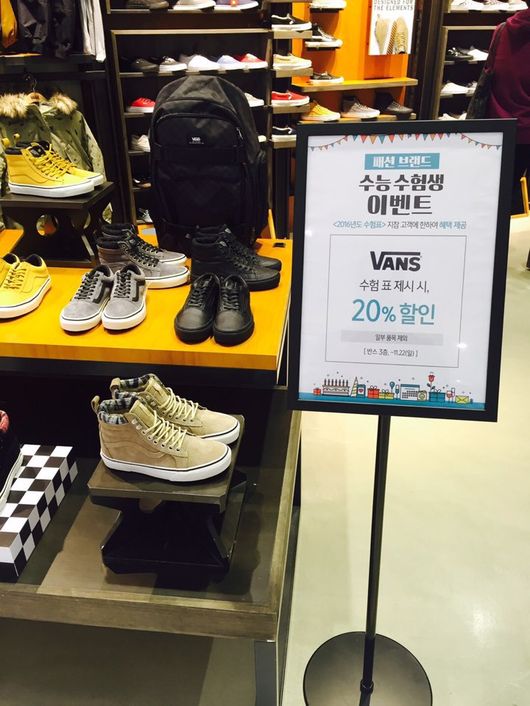 브랜드별로 최장 12월 31일까지 진행되는 이번 프로모션은 행사 기간 동안 패션, 뷰티, 식음 분야 등 다양한 브랜드들이 수험표를 지참한 수험생에 한하여 할인 혜택 및 사은품을 증정해 눈길을 끈다.