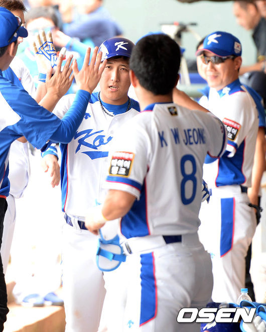 타선은 1회부터 6회까지 끊임없이 터졌다. 매 이닝 출루가 이뤄졌고, 득점 물꼬가 트이면 대량득점을 올리는 집중력도 선보였다. 1회 한국은 정근우-손아섭의 연속안타로 무사 1,2루를 만들고 김현수가 2타점 결승 2루타로 가볍게 경기를 시작했다. 김현수는 이대호의 뜬공 때 3루를 밟았고, 2사 후 나성범의 볼넷과 황재균의 1타점 적시타로 1점을 더 보탰다.