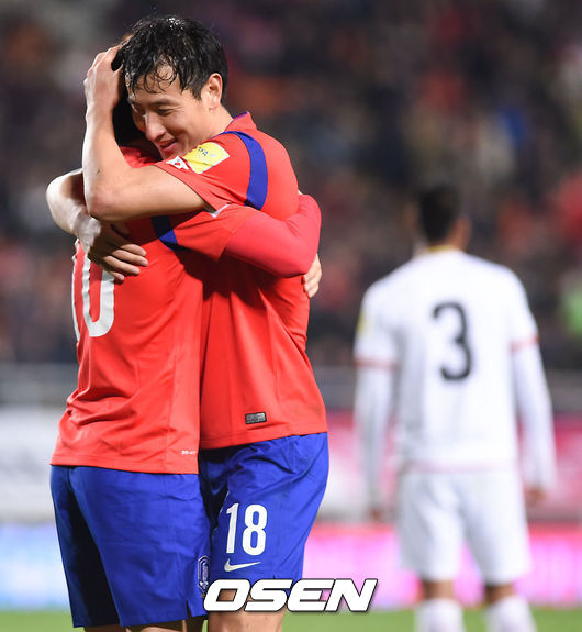 후반 남태희의 추가골때 지동원이 남태희와 기뻐하고 있다. /soul1014@osen.co.kr