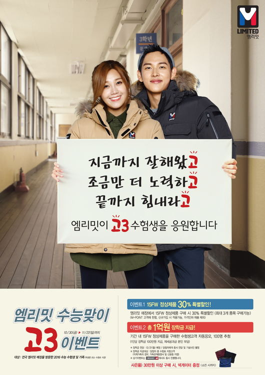 메트로 아웃도어 브랜드 엠리밋에서는 수험생을 대상으로 총 1억 원의 장학금 지원 및 신제품을 할인하는 '수험생 응원 이벤트'를 진행한다.