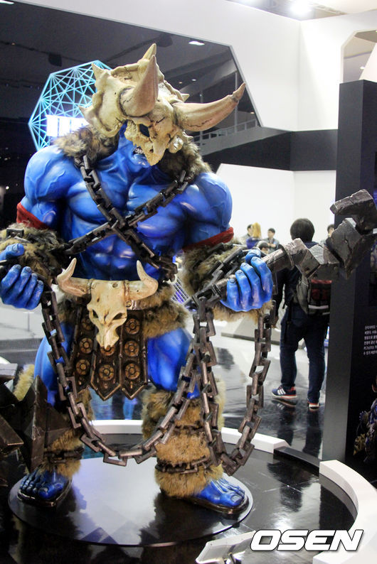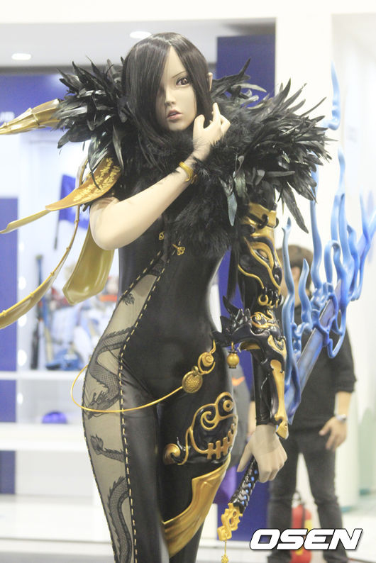 BTC MXM 부스에서는 IP 전시 위주로 캐릭터들이 총동원됐다. 리니지 ‘데스나이트’, 블소 ‘진서연’, 오리지널 캐릭터 ’카그낫조’의 대형 피규어를 만날 수 있다.