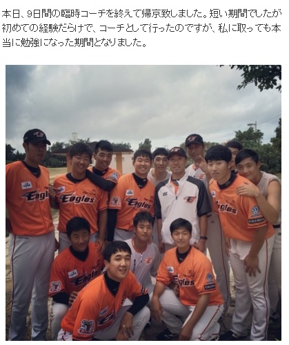 와타나베도 이날 자신의 블로그에 한화 투수들과 찍은 단체사진을 올리며 9일간의 인스트럭터 소회를 남겼다. 그는 "9일에 임시 코치를 마치고 귀경했다. 짧은 기간이었지만 코치로서의 첫 경험이었다. 나에게 있어서도 정말 공부가 된 기간이었다"고 돌아봤다.