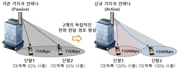 이번에 시연한 '수직 빔포밍' 기술은 기존에는 전파 전달 시 안테나에서 1개의 빔(Beam)을 보냈던 것과 달리, 1개의 안테나에서 2개의 빔을 동시에 내보내는 것으로, 이론상 기존 대비 최대 2배의 속도 향상이 가능한 신기술이다.