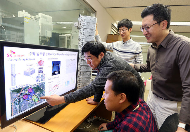 SK텔레콤(사장 장동현, www.sktelecom.com)이 15일 1개의 안테나로 2개의 안테나 성능을 구현하는 '수직 빔포밍(Elevation Beamforming)' 기술을 국내 최초로 시연하며, 지난 10월 국제 표준화단체인 3GPP가 마지막 LTE 국제 표준 기술 브랜드로 확정한 'LTE-A Pro'의 핵심기술 확보에 성공했다고 밝혔다.