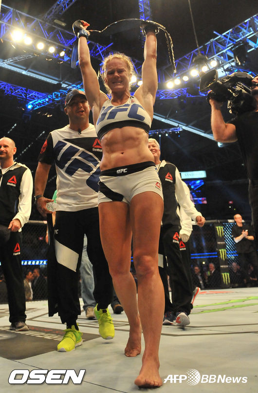 새로운 챔피언에 등극한 홈은 시종일관 여유가 넘쳤다. 그녀는 로우지가 리매치를 신청하면 받아주겠냐는 질문에 “리매치는 물론 가능하다. 패한 쪽 입장에서 다시 붙고 싶은 것은 당연하다. 내가 챔피언으로서 다시 붙는 것은 좋은 일이다. 벨트를 내가 차지했으니 이제 지켜야 한다”며 자신감을 보였다. / jasonseo34@osen.co.kr