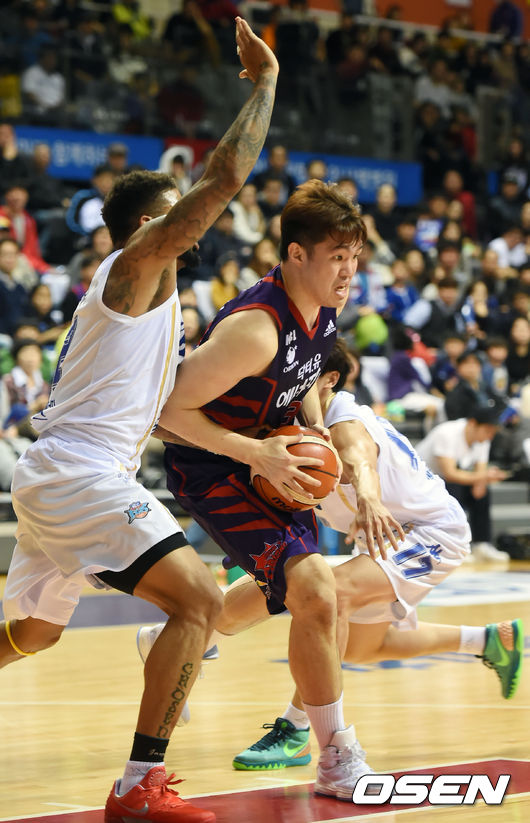15일 오후 경기도 고양시 일산서구 고양 체육관서 열린 2015-2016 KCC 프로농구 고양 오리온 오리온스와 전주 KCC 이지스의 경기, 1쿼터 오리온 이승현이 돌파를 시도하고 있다.