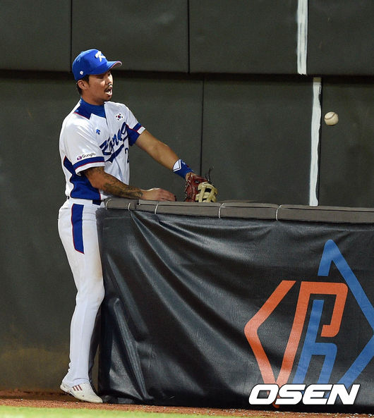 15일 오후 대만 타이베이 티엔무야구장에서 열린 '2015 WBSC 프리미어 12 ' 대한민국과 미국의 B조 예선 경기, 6회초 무사 1,2루 스클라파니의 파울볼을 오재원이 놓치고 있다.