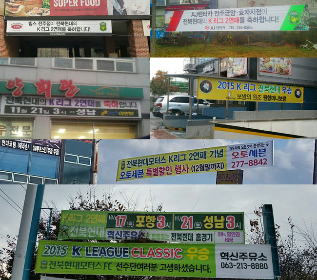관공서뿐만 아니라 전북 후원의 집 등 많은 업체와 팬들이 길거리와 건물 외벽에 전북의 K리그 클래식 2연패를 축하하는 현수막을 걸어 전라북도의 축제로 만들고 있다.