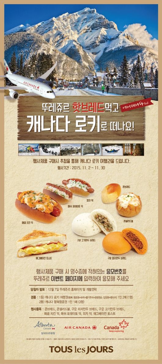 캐나다관광청은 오는 30일까지 뚜레쥬르, 알버타관광청 그리고 에어캐나다와 함께 겨울 로키의 매력을 알리고자 캐나다 로키 여행권 및 항공권 증정 이벤트를 진행한다.