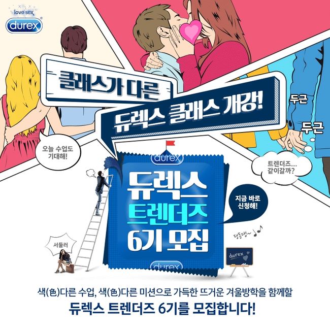 콘돔 브랜드 듀렉스가 건강한 성 문화 조성을 위해 함께 뛸 '듀렉스 트렌더즈(Durex Trenders) 6기' 35명을 18일부터 내달 2일까지 모집한다.