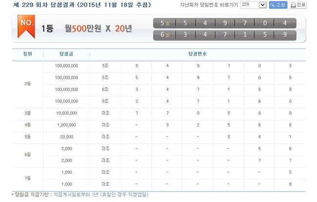 [OSEN=이슈팀] 제 229회차 연금복권당첨번호가 발표되자 1등 번호에 관심이 집중되고 있다.