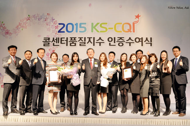 KT(회장 황창규, www.kt.com)가 19일 한국표준협회에 선정 '2015 한국콜센터 품질지수(KS-CQI, Korea Standard Contact Service Quality Index)'에서 '이동통신' 및 '초고속 인터넷' 분야 모두 1위를 수상했다고 밝혔다.