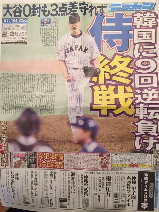 ‘2015 WBSC 프리미어12’의 가장 강력한 우승후보로 손꼽혔던 일본은 19일 도쿄돔에서 열린 한국과의 4강전에서 3-4로 역전패하며 주저앉았다. 9회가 시작되기 전까지 3-0으로 앞서고 있어 승리를 확신했던 일본이지만 9회 계투 작전이 실패로 돌아가는 등 한국의 파도에 휩쓸려 그대로 침몰했다. 일본은 21일 오후 1시부터 멕시코와 3·4위전을 치러야 하는 초라한 신세가 됐다.