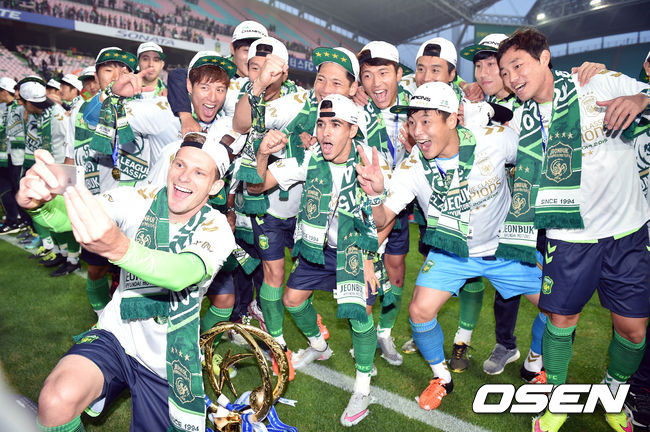 한편, 최강희 감독이 이끄는 전북은 지난 8일 제주월드컵경기장에서 열린 K리그 클래식 36라운드 제주와 원정경기에서 1-0으로 승리를 거뒀다. 전반 47분 이재성이 넣은 선제골을 끝까지 지킨 전북은 22승 6무 8패(승점 72)가 돼 남은 2경기 결과와 상관없이 우승을 차지했다.