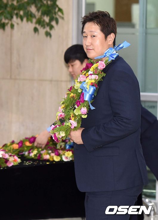 이대호는 지난 22일 김포공항을 통해 프리미어 12 선수단과 함께 귀국했다. 19일 9회 이대호의 역전 2타점 적시타로 일본에 극적인 역전승을 거두며 결승에 진출한 대표팀은 21일 결승전에서 미국을 8-0으로 꺾어 대회 초대 챔피언 자리에 올랐다.