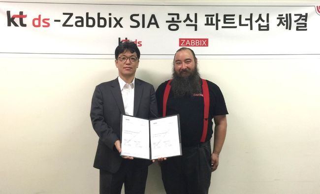 KT그룹의 IT 서비스 전문기업인 KT DS(대표 김기철, www.ktds.com)는 글로벌 모니터링 솔루션 전문기업 Zabbix SIA(대표 Alexei Vladishev, www.zabbix.com)와 공인 파트너십 계약을 체결하고 오픈소스 자빅스(Zabbix)에 대한 기술 지원체계를 확보했다고 23일 밝혔다.