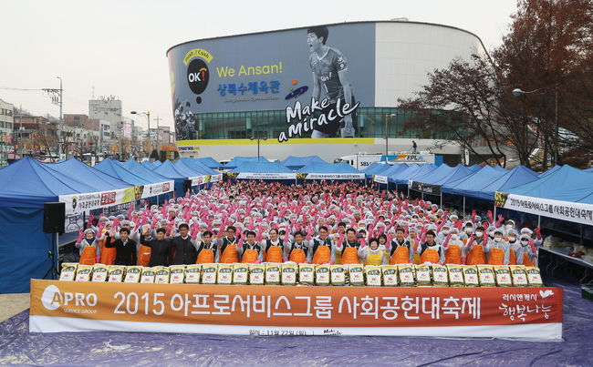 OK저축은행이 22일 안산 상록수체육관에서 계열사 임직원들과 함께 '2015 아프로서비스그룹 사회공헌대축제'를 시작했다.