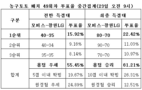 양팀의 같은 점수대 접전에 투표한 농구팬이 26.31%로 뒤를 이었고, 나머지 12.51%는 창원LG 의 승리를 전망했다.