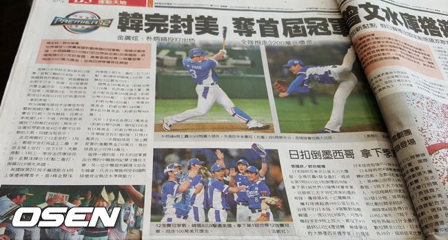 한국은 21일 일본 도쿄돔에서 열린 프리미어12 미국과의 결승전에서 8-0으로 완승을 거뒀다. 이번 대회를 준비하며 여러 열악한 조건 속에서도 김인식 감독을 비롯한 코칭스태프와 선수는 하나로 뭉쳐 최고의 성적을 냈다. 그리고 이러한 한국의 선전에 대만 언론도 갈채를 보냈다.
