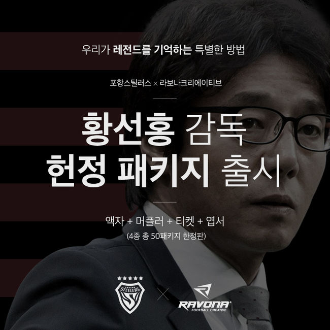 포항스틸러스는 레전드 황선홍 감독을 기념하기 위해 50개 한정판 패키지를 판매한다. 포항은 K리그 최고의 유니폼 디자이너 출신으로 알려진 라보나 크리에이티브의 조주형 디자이너, 이남석 디자이너와 함께 황선홍 감독에게 헌정 할 기념액자, 머플러, 기념티켓 및 7종의 엽서로 구성된 패키지 박스를 제작했다.