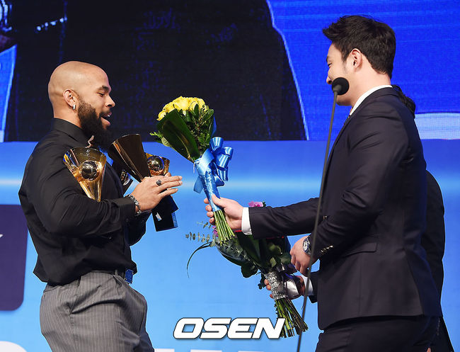 이날 두 선수는 박병호가 호명되고 단상에 오르자 에릭 테임즈(NC)가 따라 올라 꽃다발을 건넸고, 이어 테임즈가 장타율, 출루율, 득점, 타율 부문 상을 받자 박병호가 꽃다발을 다시 전하는 훈훈한 장면을 보여주기도 했다. /autumnbb@osen.co.kr