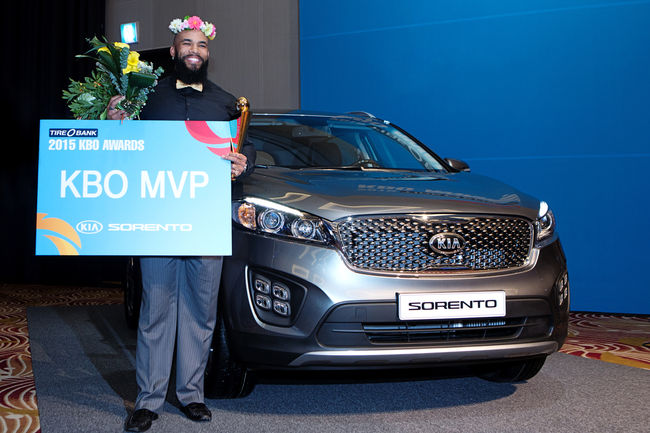 기아차가 2015 KBO리그를 빛낸 테임즈에게 쏘렌토를 선물했다.