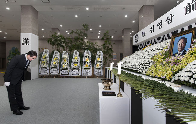 프랑수아 프로보 르노삼성자동차 사장이 25일, 부산시청에 마련된 김영삼 전 대통령 분향소를 찾아 고인의 영면을 빌었다.