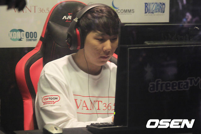 김정우는 26일 서울 대치동 아프리카TV 프릭업스튜디오에서 열린 '반트36.5 대국민 스타리그(이하 대국민 스타리그)' 박성준과 16강 3회차 경기에서 저글링 싸움에서 앞서면서 승리를 거뒀다.