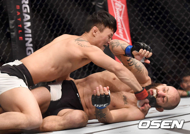 최두호는 8일 서울 올림픽체조경기장에서 열린 UFC 파이트 나이트(UFC 서울) 페더급 샘 시실리아(미국)과 경기서 1라운드 KO 승을 챙겼다.