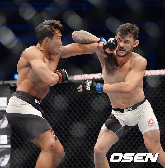 추성훈은 28일 서울 올림픽체조경기장에서 열린 UFC 파이트 나이트(UFC 서울) 웰터급 알베르토 미나(브라질)와 대결서 심판판정 끝에 1-2로 패했다.