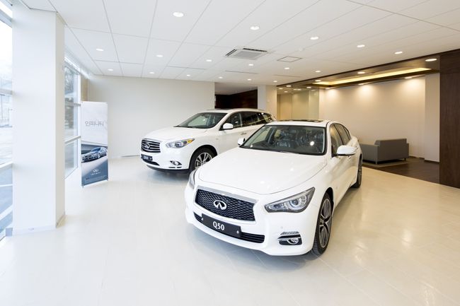 강원도 원주시 관설동에 자리잡은 인피니티 원주 전시장은 지상 2층 규모로 최대 6대 차량 전시가 가능하다. 특히, 프리미엄한 느낌의 인피니티의 글로벌 전시장 스탠다드 ‘아이레디(IREDI, Infiniti Retail Environment Design Initiative)’ 콘셉트를 적용했다.