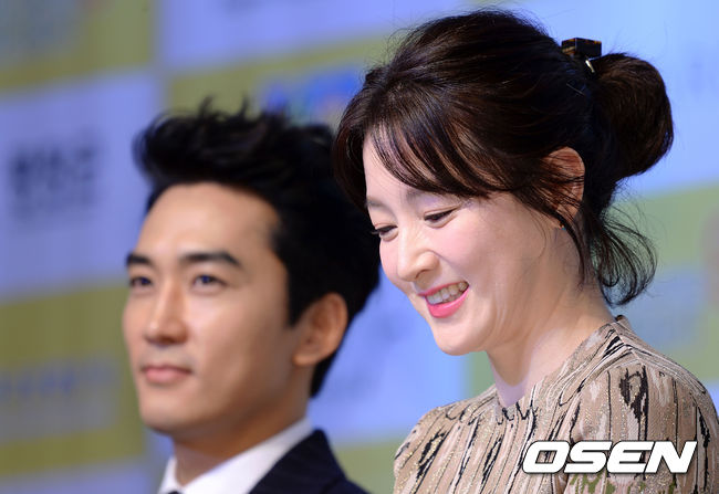 배우 송승헌과 이영애가 취재진의 질문을 듣으며 미소를 짓고 있다.