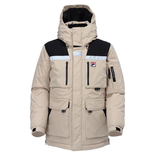 힙을 덮는 사파리형 디자인에 블랙, 베이지 등 단색 위주의 컬러 바리에이션으로 실용적인 멋을 강조한 것이 휠라 ‘레전드 다운 재킷’의 특징. 야외 활동에는 물론 출근이나 등굣길 등 일상에서 착용하기에 알맞다.