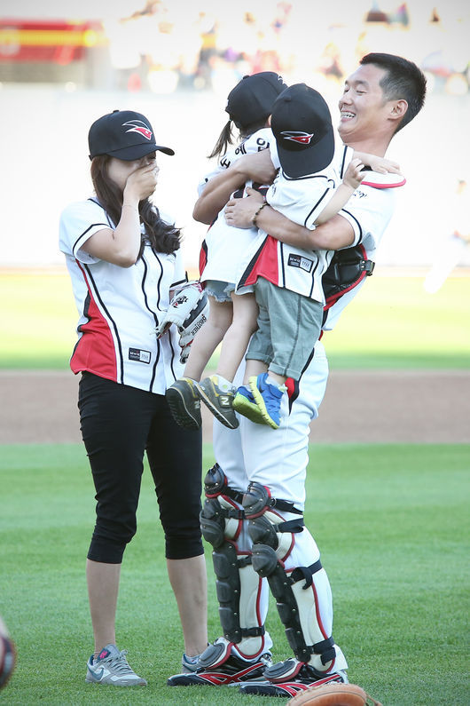 서 씨는 예정대로 마운드에 올라 안정적인 시구로 공을 포수 미트에 꽂았고, 공을 잡은 포수는 마스크를 벗고 마운드를 향해 걷기 시작했다. 그는 다름 아닌 남편 도 중사였다.