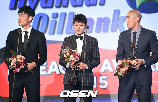 홍철(수원) 김기희(전북) 요니치(인천) 차두리(서울)가 1일 오후 서울 서대문구 그랜드힐튼호텔 컨벤션센터 컨벤션홀서 열린 2015 현대오일뱅크 K리그 대상 시상식서 클래식 베스트일레븐 수비수로 꼽혔다.