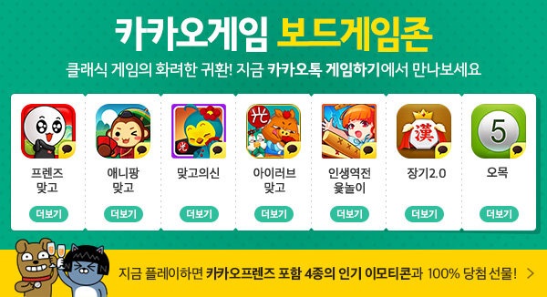 카카오가 모바일 게임 장르 확대를 위해 새로 마련한 보드게임존은 카카오 게임하기를 통해 출시되는 바둑, 장기, 오목, 윷놀이, 고스톱 등 모바일 보드게임들을 이용자들이 쉽게 찾고 즐길 수 있도록 한 곳에 모은 보드게임 전용 공간이다.