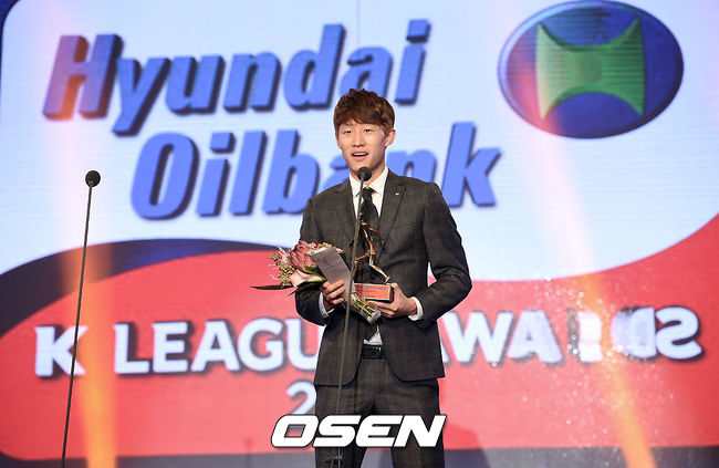 이재성은 "아무리 잘했다고 해도 100점을 줄 수는 없지만 영플레이어상을 받았기 때문에 95점을 주고 싶다. 만족보다는 항상 보완할 점을 생각하겠다"면서 "올 시즌 많은 경기를 통해 느끼고 배웠다. 다음 시즌은 조금 더 공격적으로 해결 능력도 키우고 싶다"고 바람을 나타냈다./dolyng@osen.co.kr