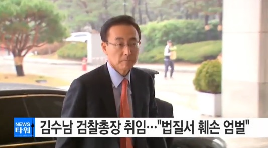 김 총장은 법질서를 훼손하는 각종 범죄에 대해 엄정 대처하겠다며 체제전복 세력, 불법 폭력 시위 사범, 부패 사범에 대해 철저히 수사하겠다고 강조했다.