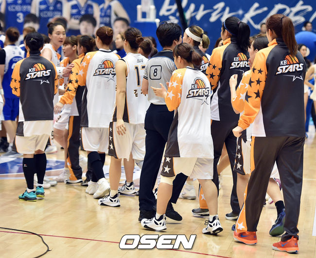 경기가 끝난 후 KB스타즈 선수들이 환호하고 있다. /eastsea@osen.co.kr