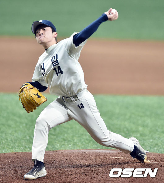3일 오전 서울시 고척스카이돔에서 진행된 '2015 대한민국 야구대제전' 신일고와 휘문고의 8강전 경기, 1회초 신일고 선발투수 오정진이 힘차게 공을 뿌리고 있다.