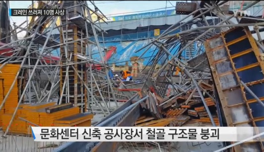 [OSEN=이슈팀] 경남 김해의 문화센터 신축 공사장에서 크레인이 넘어져 작업 인부 등 2명이 숨지고 8명이 중경상을 입었다.