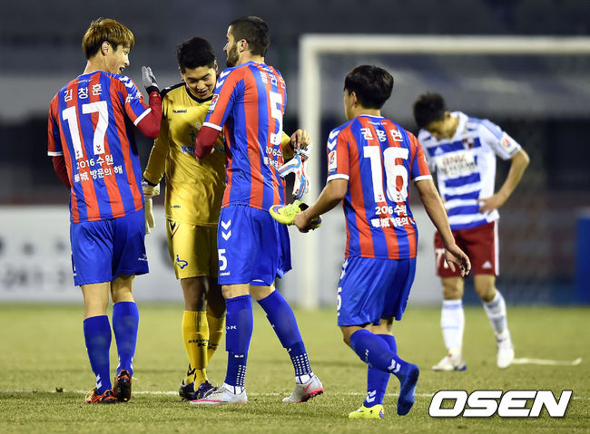 지난 2일 수원종합운동장에서 펼쳐진 현대오일뱅크 K리그 승강 플레이오프 1차전서는 수원FC가 부산아이파크를 1-0으로 제압했다.