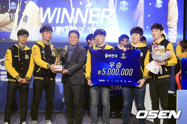 한국교통대는 6일 서울 대치동 아프리카TV 프릭업 스튜디오에서 열린 '2015 알바천국 대학생 LOL 배틀(이하 LCB)' 윈터 국민대와 결승전서 뛰어난 전투능력을 보여주면서 2-0 승리를 거뒀다. 이 승리로 한국교통대는 LCB 첫 우승과 함께 상금 500만원을 차지했다.