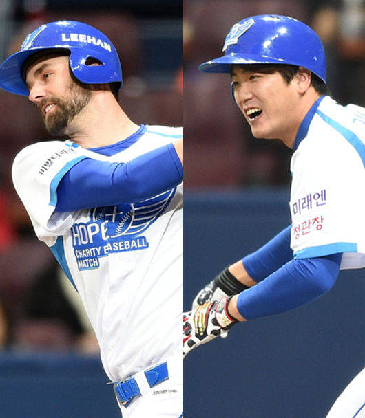 김광현과 니퍼트는 6일 고척스카이돔에서 열린 2015 희망더하기 자선 야구대회서 양신 팀에 소속, 각각 3번 타자겸 1루수, 4번 타자겸 좌익수로 출장했다.