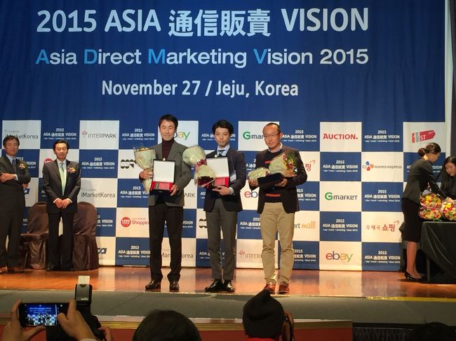 [사진]'2015 아시아 통신판매 비전 시상식(Asia Direct Marketing Vision)'에서 모바일 분야 최우수기업상을 수상한 인터파크 주세훈 마케팅지원실장(왼쪽)
