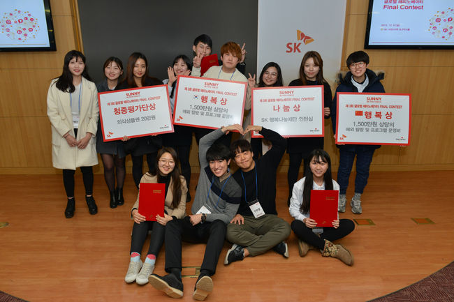 SK행복나눔재단이 운영하는 SK 대학생 자원봉사단 SUNNY(이하 'SK SUNNY')가 '제3회 글로벌 해피노베이터 콘테스트' 최종 결선 대회를 6일 개최하고 최종 수상팀을 발표했다.