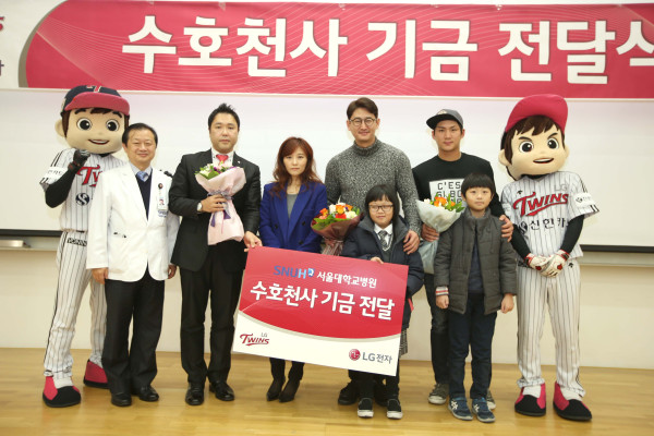 LG 트윈스 박용택과 오지환은 "고객에게 받은 큰 사랑에 보답한다는 뜻에 10년간 함께해 온 LG전자에 감사드린다"며 "우리의 작은 정성이 환아들에게 도움이 되길 바란다"고 말했다.