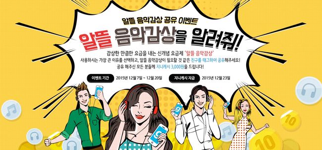 이번 이벤트는 알뜰음악감상 상품 이용자들이 직접 상품의 장점을 페이스북에 알리고 지니캐시 3천원을 선물로 받는 체험공유 리워드 프로모션으로 진행된다.
