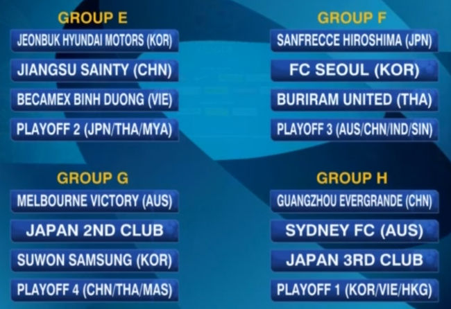 F조에 들어간 서울은 J리그 우승팀 산프레체 히로시마, 태국리그 우승팀 부리람 유나이티드(태국), PO3 승자, G조의 수원은 멜버른 빅토리(호주), 일본 일왕배 우승팀, PO4 승자와 편성됐다. PO1에 진출한 포항은 조별리그에 진출할 경우 슈퍼리그 우승팀 광저우 에버그란데(중국), 시드니 FC(호주), J리그 3위팀과 격돌한다. /sportsher@osen.co.kr